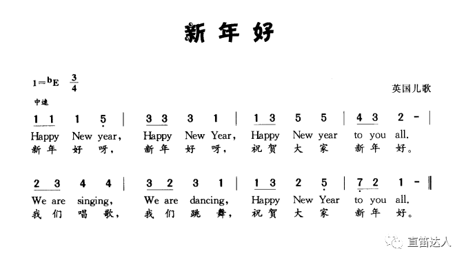 用一些大家耳熟能详的音乐做乐器学习的启蒙教材,是有心理学依据的,也是非常通用的做法。因此,几乎所有乐器学习教材中的启蒙阶段,都能找到这首《新年好》(Happy new year),直笛学习当然也不例外。