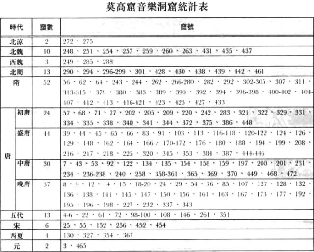 莫高窟音乐洞窟统计表,《敦煌石窟全集》,商务印书馆