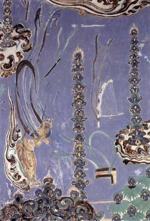 在李贺的诗歌中,那奏出了惊世妙音的箜篌,是我国古代传统弹弦乐器,汉代时从波斯传入中原,在唐朝时尤为风行,唐宪宗就是箜篌乐手李凭的超级粉丝。敦煌壁画中,箜篌是出现次数仅次于琵琶的乐器。