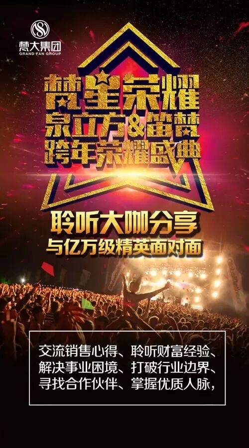 《梵星荣耀 • 泉立方&笛梵2016跨年荣耀盛典》即将在12月28日,于广州体育馆盛大开幕。这,不仅是一场前所未有的视觉盛宴,更是一场打开未来,通向无界的战略布局。身为每个梵大人,都应以能参加本次“梵星荣耀”盛典为骄傲与光荣,见证自己的辉煌,荣耀触手可及!