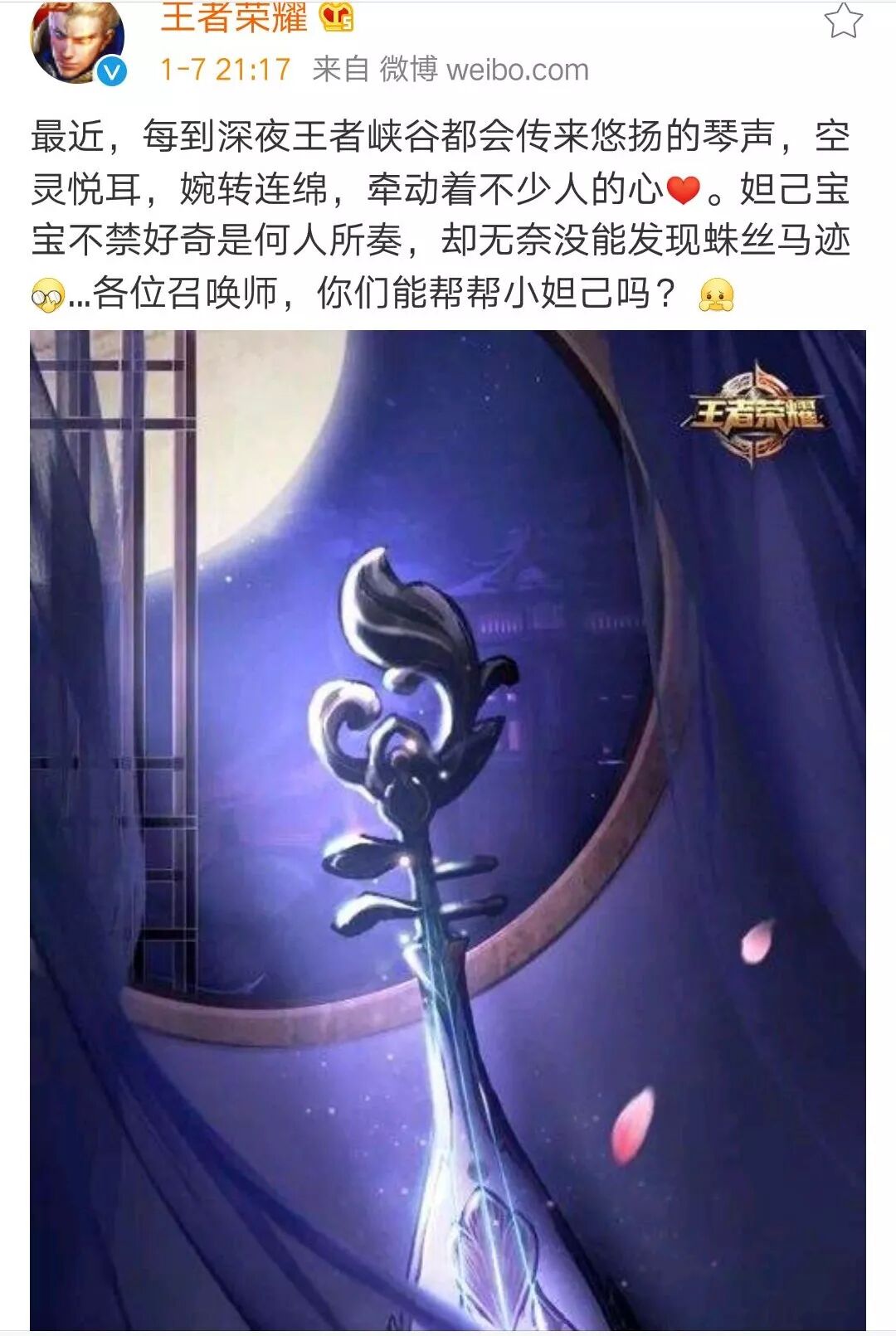 经常关注《王者荣耀》新英雄消息的玩家都知道,每次官方让玩家“猜英雄”的时候,就代表有新英雄即将上线。昨晚,《王者荣耀》官方微博发文“每到深夜王者峡谷都会传来悠扬的琴声”,并配了一张“琵琶”的图片,这是不是在向玩家暗示新英雄的武器是“琵琶”呢?