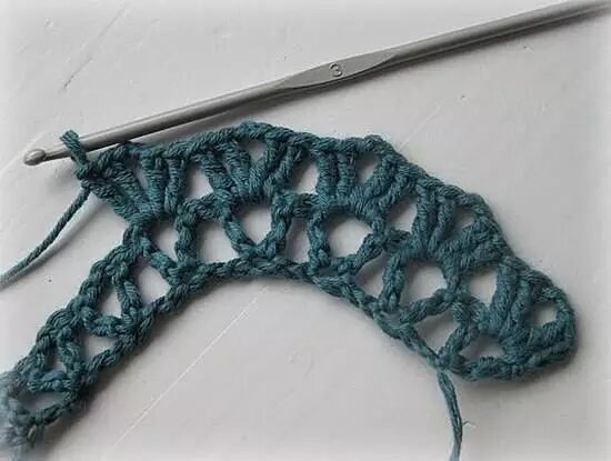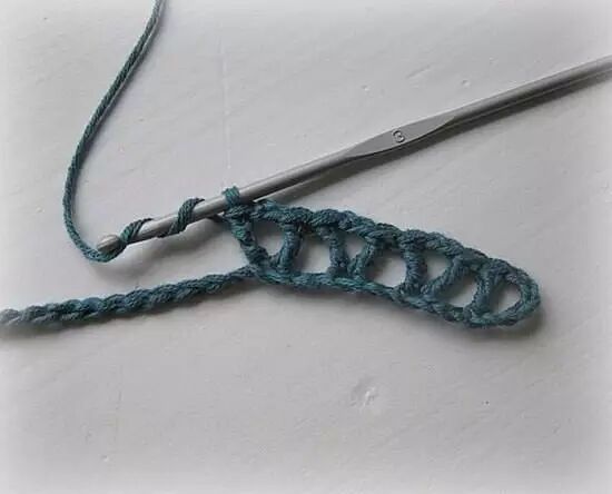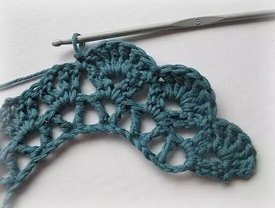 第3行2针长长针1针辫子针,再重复钩,钩在上1行的辫子针上