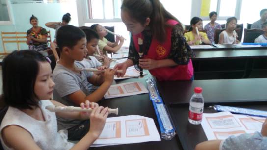 两个小时的课程下来,社区的孩子们都非常开心,他们叽叽喳喳的交流着自己学会的知识,相互查看对方握笛子的手势。有几个大一点的孩子已经能简单的吹奏几个音调。大家恋恋不舍的离开社区课堂,对老师和志愿者说着感谢的话,并表示期待下一周的竖笛课。