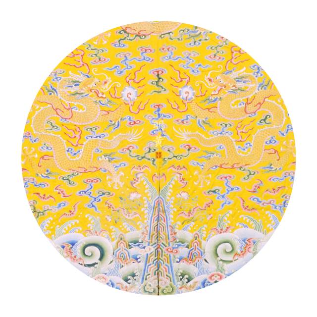 (明黄色线绸绣牡丹平金团寿纹单氅衣 局部)