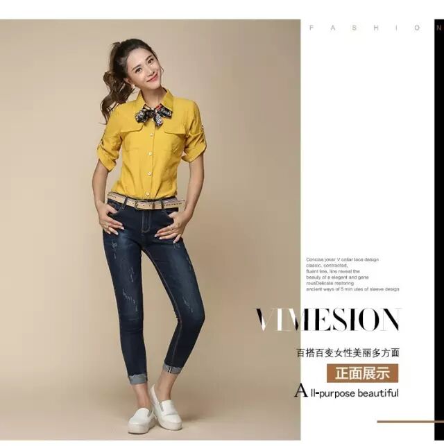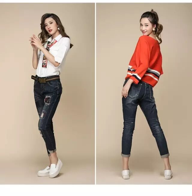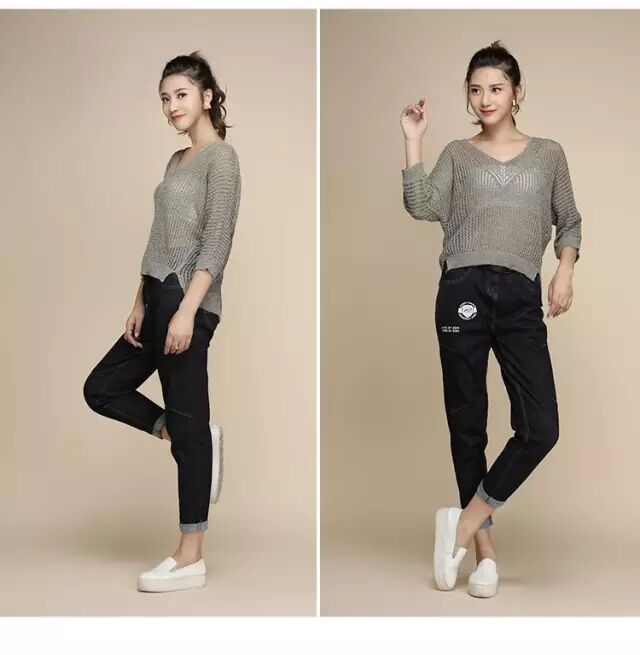 外出的时候,小编为您推荐几款牛仔裤吧,牛仔裤和我们的针织衫搭配,再加一双小白鞋,耶!完美!牛仔是全棉面料舒适透气又不怕蚊子咬了。