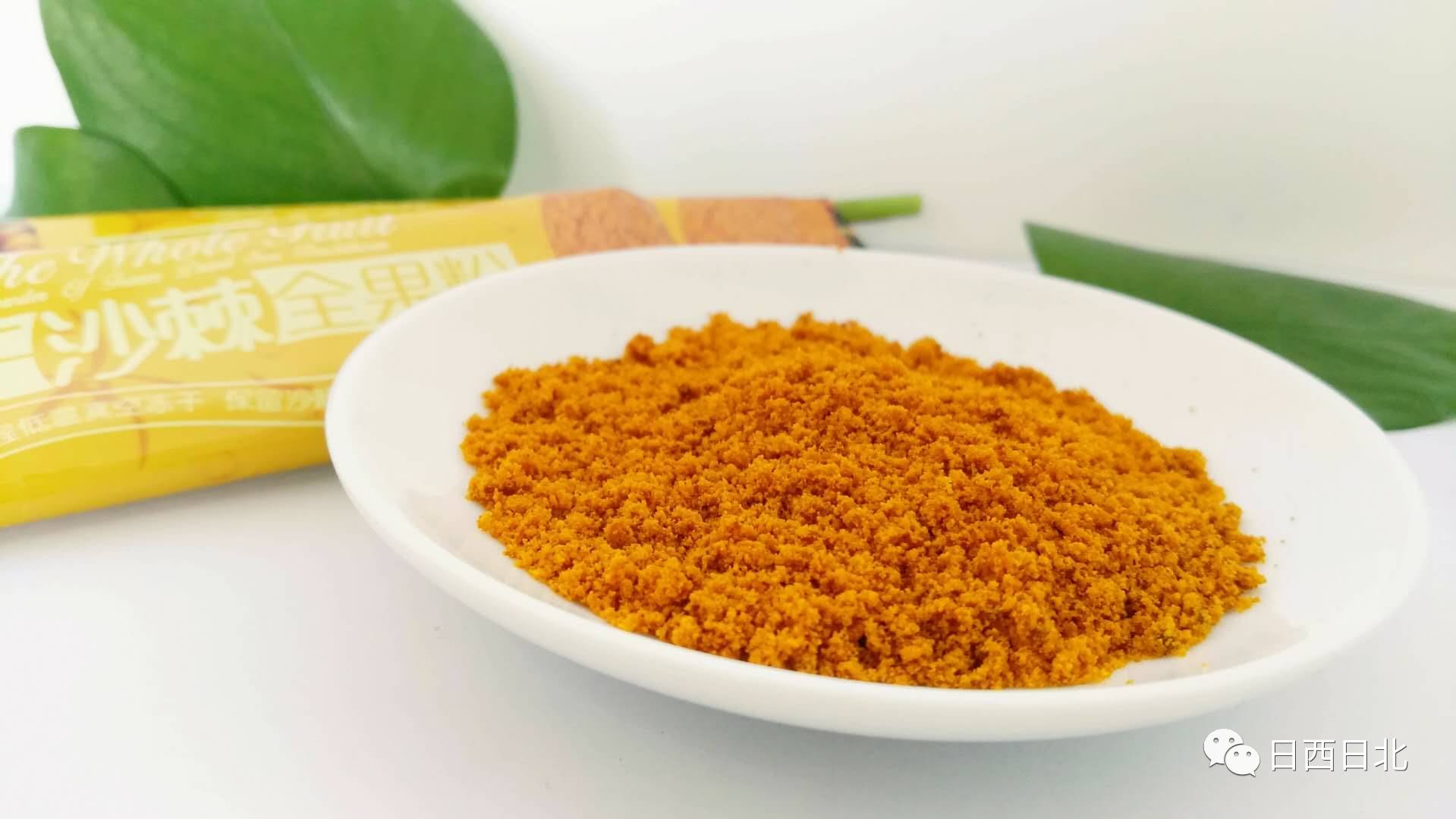 每4.5公斤沙棘全果可以提炼1公斤沙棘冻干精粹粉,橘红色疏松形粉末保留了沙棘全部果皮、果肉、籽核,营养价值没有丝毫流失。