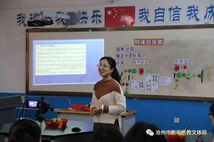 范营媛老师为我们展示了一节一年级科学课《给物体分类》。课堂上,针对低年级学生容易发散的特征范老师从生活实际出发创设了多个情境,如小叮当的蔬菜店,超市里的货物,垃圾分类,以及作业给自己的书包衣柜分类整理等,引领着一年级的小豆丁们通过实践感知去体验物体的特征并试着解决生活中的问题。孩子们思维活跃,兴趣盎然,一步步活动有条不紊。而且范老师的教学语言丰富,特别富有亲切感,尊重学生,师生关系非常融洽。整节课孩子们是快乐的、幸福的、有收获的。