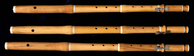 早期的长笛只有音孔而没有按键,直到 17 世纪末巴洛克长笛出现。此时的长笛是木制的,有七个音孔,最后一个音孔有按键,由右小指控制,最主要的是它的结构由原先的整支管改进为三部分(笛头、笛身、笛尾),这种改变使音色和音域大为改进。同时还可以通过调整两个连接处接缝的长短来达到调整音准的目的。正是因为这样的改进,才使得长笛逐渐成为乐队中一种常用的乐器而迅速发展井普及。
