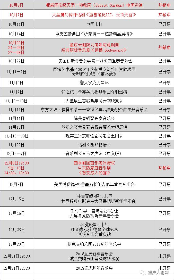 购票优惠:持招商银行卡到重庆大剧院售票处购票可享受9.5折优惠