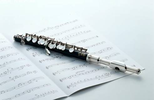【短笛】最高音域的木管乐器,比长笛体积短一倍,发音锐利而明亮。其音色在交响乐队中非常突出,常表现出战斗性、鼓动性的音乐情绪或欢乐高峰。用它的高音区摹拟自然界风的尖吼,雷雨中的闪电也很有艺术效果,如贝多芬第六交响曲第四乐章中的"暴风雨"乐意。