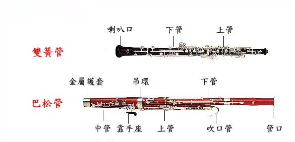 【双簧管】它是双簧族的高音乐器,音色略带鼻音。它在乐队里常吹奏抒情如歌的旋律,故有"抒情女高音"之称。它的音乐是清丽而鲜明动人的,如《春节序曲》的中部,它还能演奏断音,表现活泼愉快的情绪。