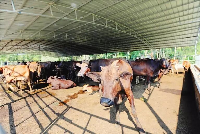 椰香牛就是雷琼牛,也叫海南黄牛。椰香牛以海南黄牛为母本,和牛为父本,杂交生出来的。椰香牛具有个体大、耐粗饲、肉质好、生长速度快、抗病力强等优点,成年椰香牛比本地牛大一倍还多,重量可达1200多斤。椰香牛明显布满大理石花纹,肌间脂肪丰富,肉质滑、绵软,感觉很细腻。