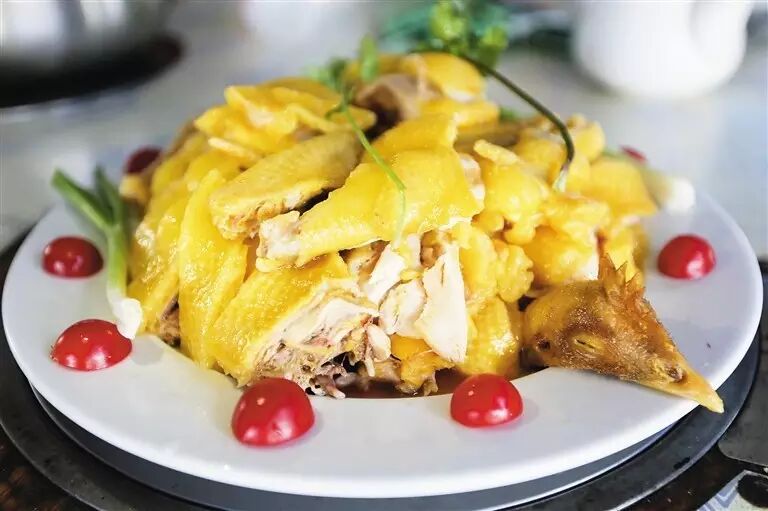 在海南农村,没有不养鸡的。全岛各地,基本都有自己的特色鸡种。在美丽富饶、阳光充足的陵水光坡镇有一种唇齿留香、回味无穷的鸡——光坡土鸡,这种鸡因生长在光坡镇一带而得名。光坡土鸡又叫光坡阉鸡,雏鸡一般养到4个月就要阉,真正养成要花一年时间。光坡土鸡一般在坡地和林地放养,吃草、虫子以及各类野果,在野外它们吃饱了,就伏在树上过夜。这种放养的土鸡因为跑得多,所以肉紧凑、皮质嫩。光坡鸡皮油黄发亮,厚实鲜美,肉松韧适中,香甜有味,有嚼头,蘸上生姜泥、蒜泥、香菜、精盐、桔子汁做成的调料,美味无比。用光坡鸡做汤,远远地就能闻到有一股特别醇香的味道,顿时令人食欲大开。浅尝一口,唇齿间荡漾着一种难以言喻的香味,久久不能散去,待吞下去以后,回味悠长。