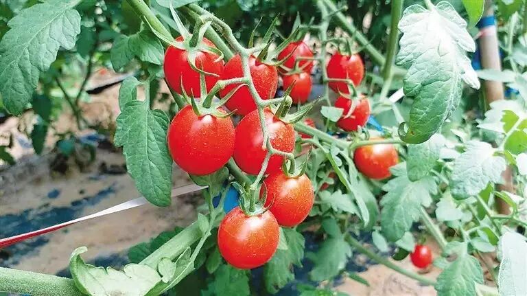 陵水的圣女果名声在外。圣女果又名葡萄番茄、樱桃番茄,除含有番茄的所有营养成分外,其维生素含量是普通番茄的1.7倍。陵水光坡镇田洋距海岸较近,又处于热带和亚热带的分界线上,昼夜温差大,土壤含盐度高,阳光充足,水质好,种出的圣女果色泽艳丽、口感鲜美、汁多肉嫩。陵水目前种植的冬季瓜菜中面积最大的是圣女果,达7万多亩。2016年,“陵水圣女果”正式获评“国家地理标志保护产品”,当年又蝉联冬交会最受欢迎农产品品牌冠军。
