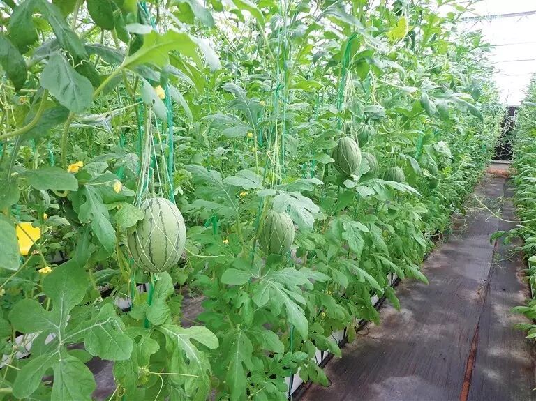 陵水美月西瓜肉质细腻无纤维,口感很好,早熟,长势强,从开花到采收28天,品质上佳。同时,该品种在海南热带地区设施栽培可以周年生产,每年可以种植5茬,年亩产达到1万公斤-1.25万公斤。该品种已通过海南省品种认定,并获海南省科技进步奖。