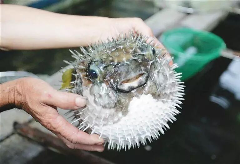 气鼓鱼粥是陵水新村镇新村疍家渔港的特色美食。它的“主角”气鼓鱼非常特别。其学名叫刺豚鱼,生活在海底珊瑚礁石间,周身长着又长又硬的刺,像刺猬一样。之所以被当地人叫气鼓鱼,是由于人一捏住它的双眼,其身体就像充满气一样鼓起来,如圆球一样,“气呼呼”的,十分可爱。
