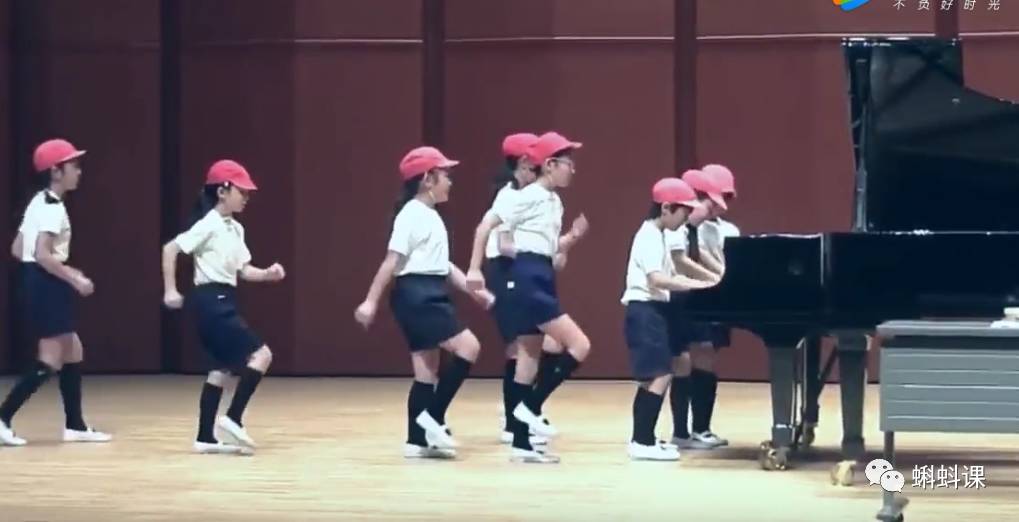 从视频中,我们可以看见孩子们一边踏步一边接力四手连弹。就好像是在音乐老师与体育老师的指导下完成了这样的表演!让作为观众的我们觉得,原来钢琴还可以这样玩!不仅展现出了厉害的四手联弹,还带给孩子们的快乐与活力!
