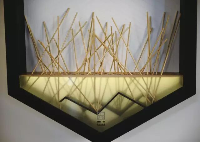 0000“林”的灵感来源于苏州博物馆的六边形窗格和透过窗格看见的竹林。灯光、屋檐、竹林相配,拿取方式区别购买普通纪念品的柜台销售方式,取走一根竹子,带走一个故事,光影配合。
