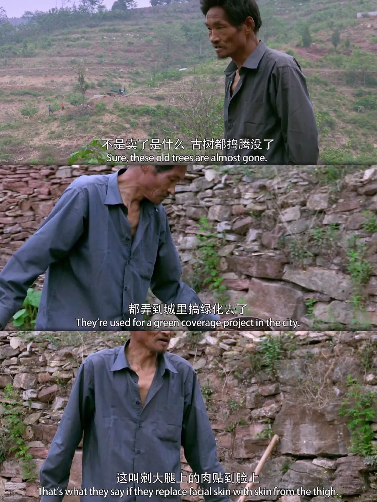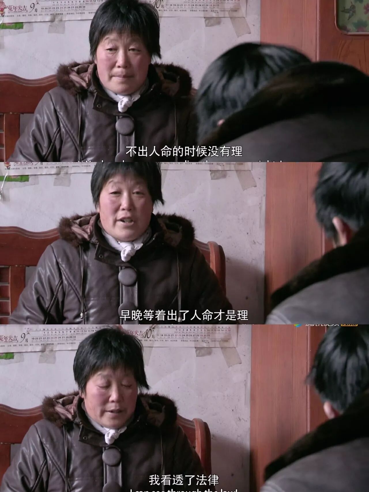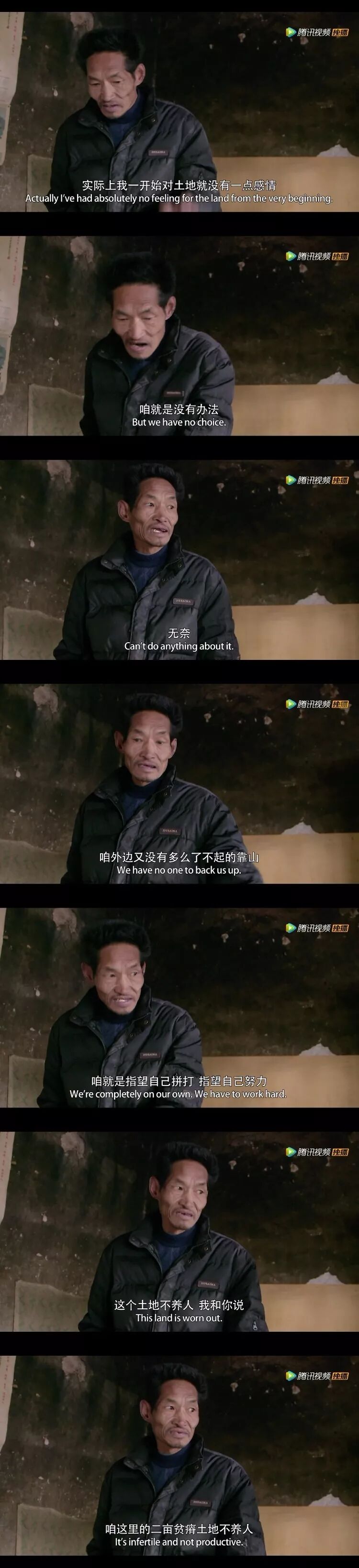 零零碎碎的扯以上这些,也不能把这部纪录片里所蕴含的各种意味都表达出来。比如张兆珍家的玉米被獾子偷吃了的时候随口说的“还保护动物,谁来保护农民”;比如杜深忠振聋发聩的“我对土地没有感情”;比如某位大婶的所抱怨的“我算是看透法律了”。