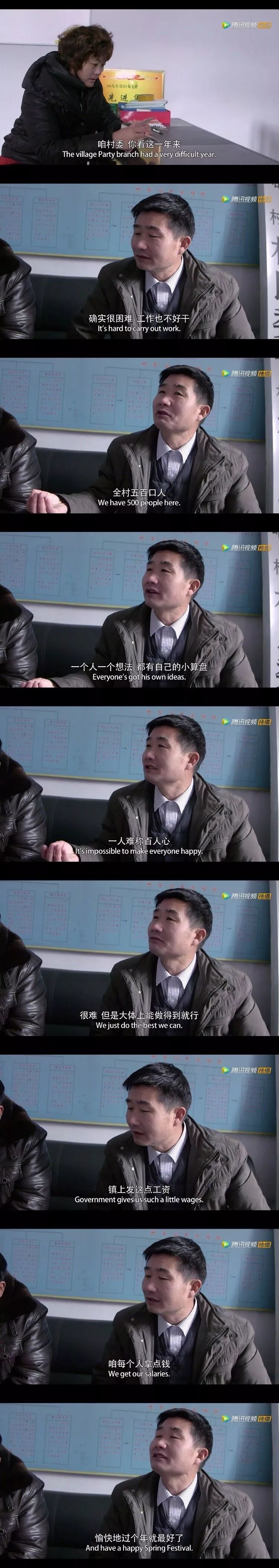 有的朋友认为影片美中不足的地方在于里面有些“正能量”有些牵强。撇开广电的要求不讲,有那么一群人,他们没有多余的娱乐生活,也没有了解这个世界的渠道,在他们乏味无聊的生活里面,他们就是始终坚持每天看新闻联播,这并不是什么值得诟病的事情。特别是对于农村,经济上的进步和政策上的扶持是实实在在能看得见的,在影片中提这么一句无可厚非。