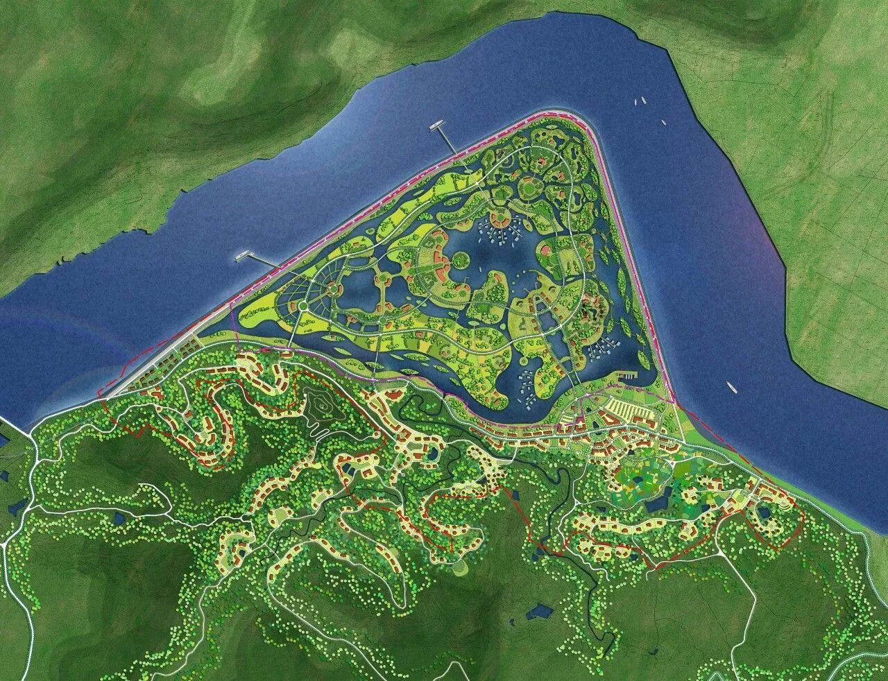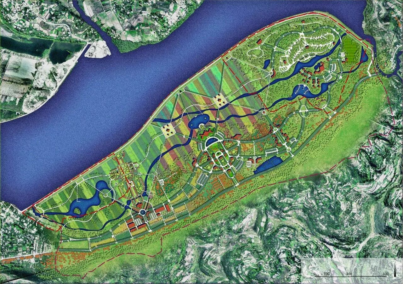 生态农业示范园位于四川省南充市江陵镇,总面积844.2公顷,是中法农业合作的试点地区之一。规划对江陵坝、杜家坝和吊马坝三大片区进行整体开发,以推动南充市嘉陵江流域沿岸旅游的跨越式发展。规划提出“悠游水镇、主题庄园、水耕文化”的整体构思,并以“舌尖上的山水田园”为策划主线,以山珍、水鲜、园蔬、林果为要素,形成田园之居、水产之食、河湾之行、特色之购、演艺之娱等几大旅游产品,构筑川渝现代农渔示范新基地和文化旅游新目的地。