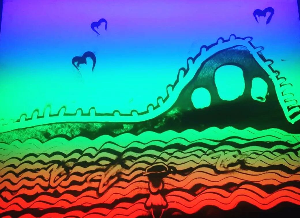 让我们一起来欣赏华艺远小同学的初级沙画吧。建议点击音乐享受。