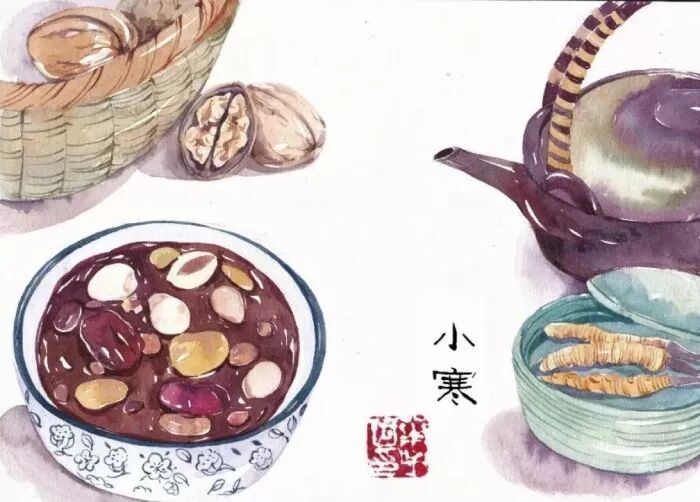 腊八喝粥。“小寒”节气中有一重要的民俗就是吃“腊八粥”。喝腊八粥的历史,最早开始于宋代。每逢腊八这一天,不论是朝廷、官府、寺院还是黎民百姓家都要做腊八粥。