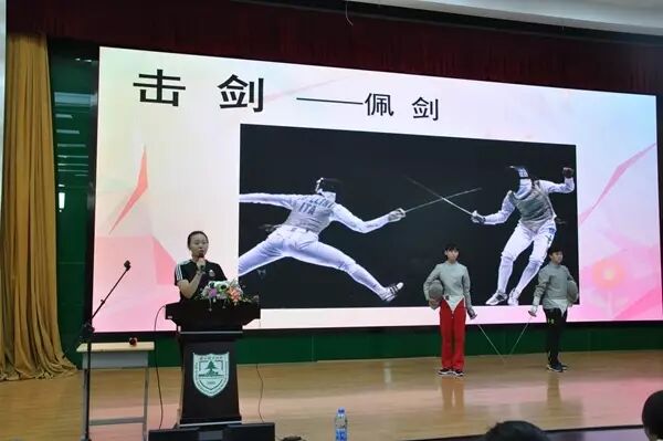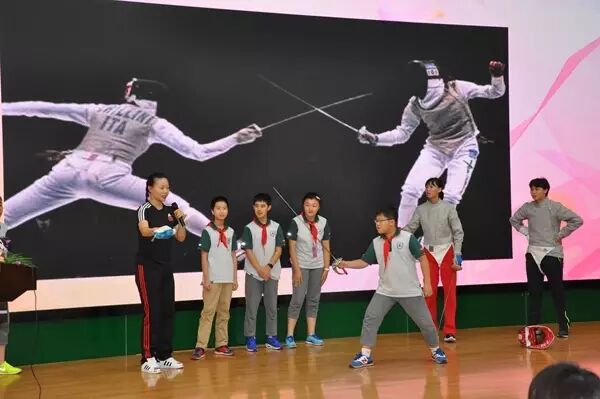 校友教练员仲玉婷是我校2010届优秀毕业生,专业击剑运动员,在现场回馈母校表演《击剑》