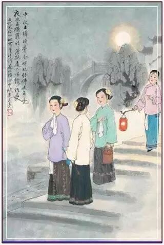中秋节当晚,吴地妇女们三五成群