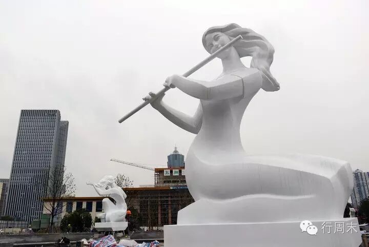 “早上路过这里,看到吊车吊着一个白色雕塑,