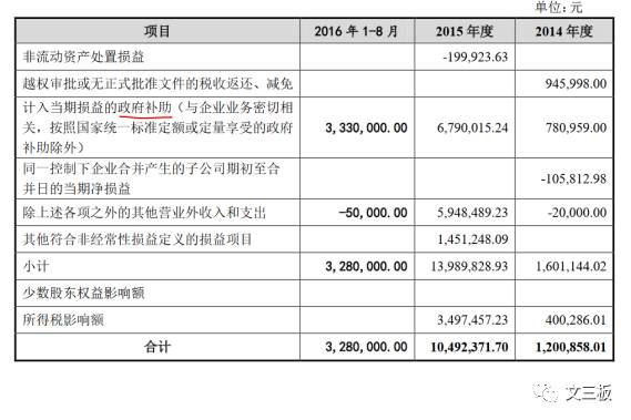 值得注意的是,笛女传媒的承诺净利润中还包括影视剧相关的政府补贴和奖励。作为生产正剧领域的公司,笛女传媒的政府补贴数目不小。2014年、2015年和2016年1—8月,政府补助金额分别为78.1万元、679万元和333万元。