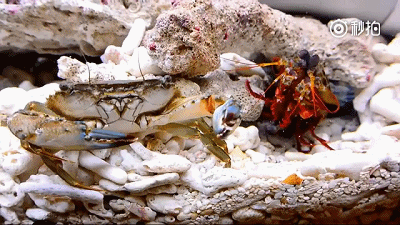 当有着坚硬外壳的螃蟹出现,皮皮虾毫不留情,上来就是连环拳一顿胖揍。