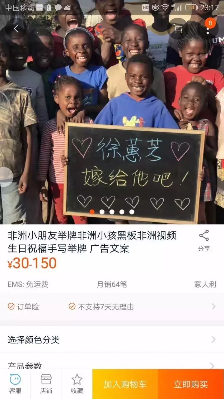非洲小孩的喊话爆红网络后,淘宝立即推出定制服务订单;