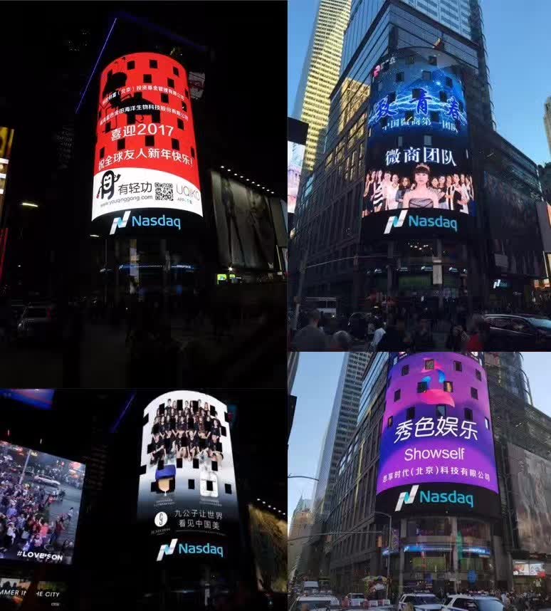 不只是大品牌的企业,国内还有大量的互联网创业公司也登上过纳斯达克大屏幕,借此来表现自身与接轨国际,而他们的通稿也一般以《XXX惊艳亮相时代广场大屏幕》作为标题。