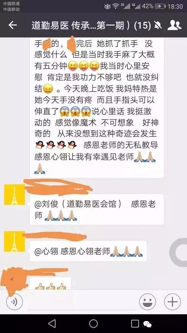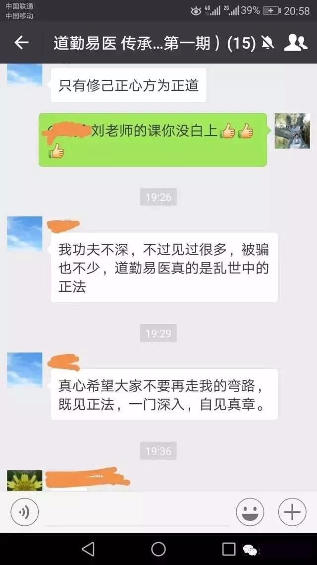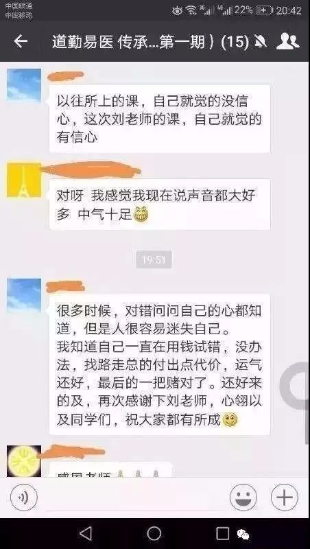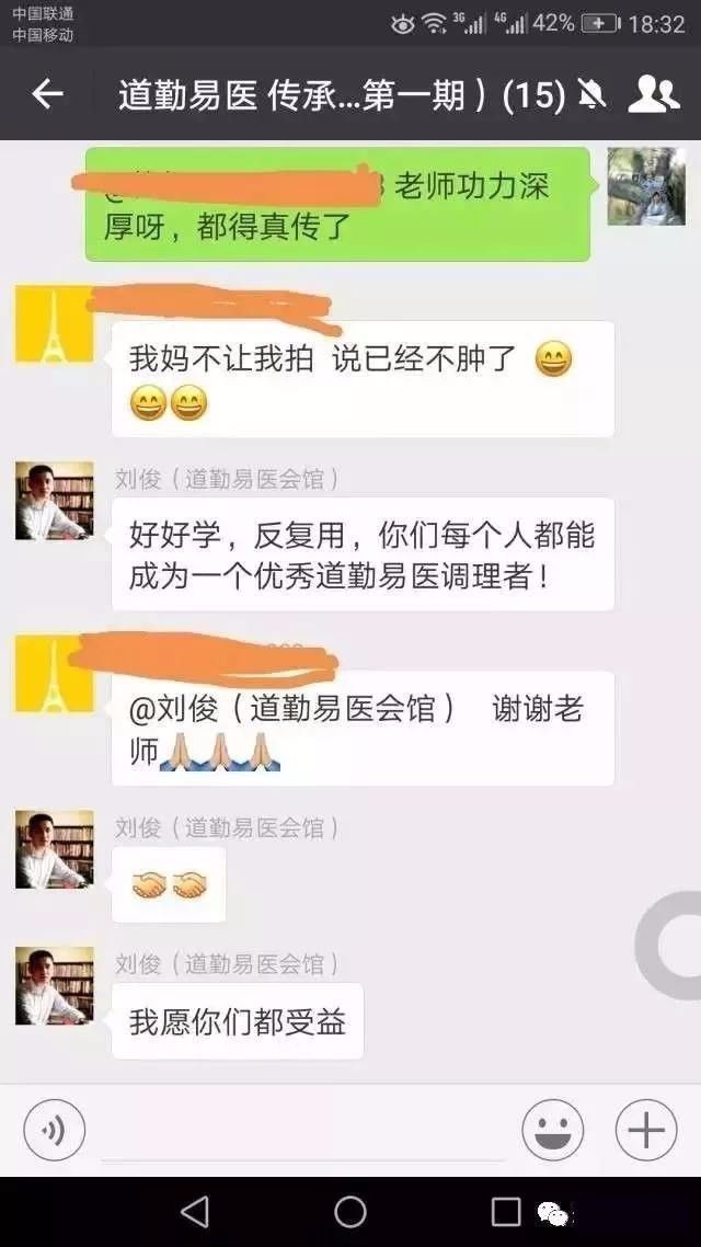 就像我以前学的一些疗愈课,真正有病的时候也只是挠痒痒,想真正取得实际的效果,我觉得还是要用刘老师的方法比较好,到现在为止开了三期了,学员们大量的实证经验说明了一切。刘俊老师本人也有20多年的应用经验,帮助了无数人,那可是有很多疑难杂症的调理,刘俊老师是真有功底的。所以真正的秘法还是在我们的老祖宗流传的瑰宝里面,而道勤易医做了最好,最恰当的提炼与运用。总之,不空谈,要落地,真管用才是重点。