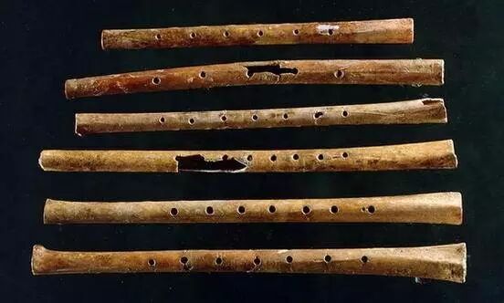 贾湖骨笛出土于河南省舞阳县贾湖裴李岗文化遗址,是我国目前出土的年代最早的乐器实物,约已有八、九千年的悠久历史。这些骨笛以鹤类尺骨制作而成,并且已经具备了四声、五声、六声和七声音阶。贾湖骨笛的出土,改写了由文献记载的五千年的中华文明史。