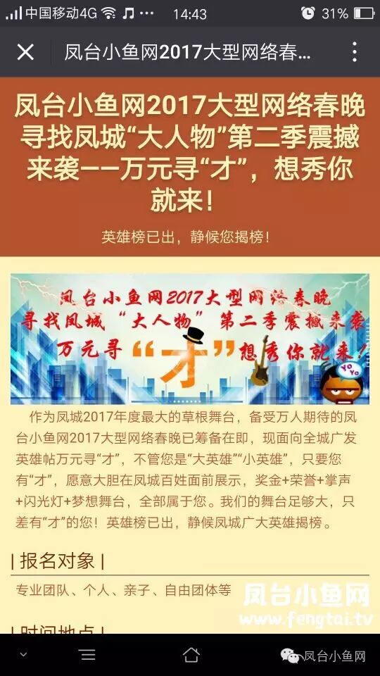 报名方式:关注“凤台小鱼网官方微信”参与报名