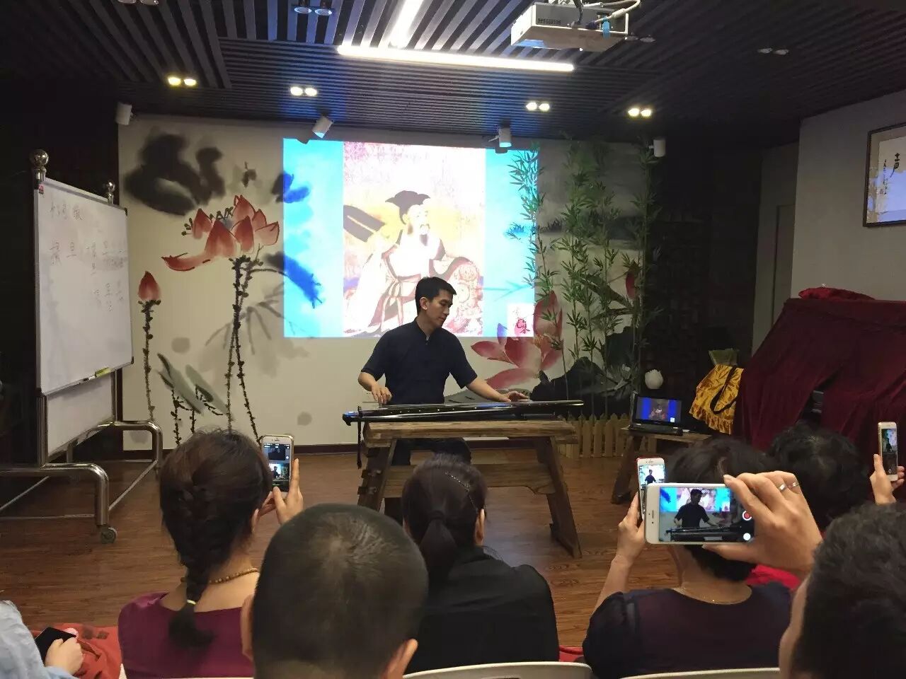 李悦老师年轻帅气,讲课通俗易懂,风趣幽默,课堂气氛轻松活跃!琴友们是来自潮汕三市各行业的佼佼者,大家为了兴趣,忙里偷闲,短短几天,不仅学琴,更重要的是换一种心情、换一个环境、换一个氛围!李老师带着大家进入古琴世界!享受一份宁静!